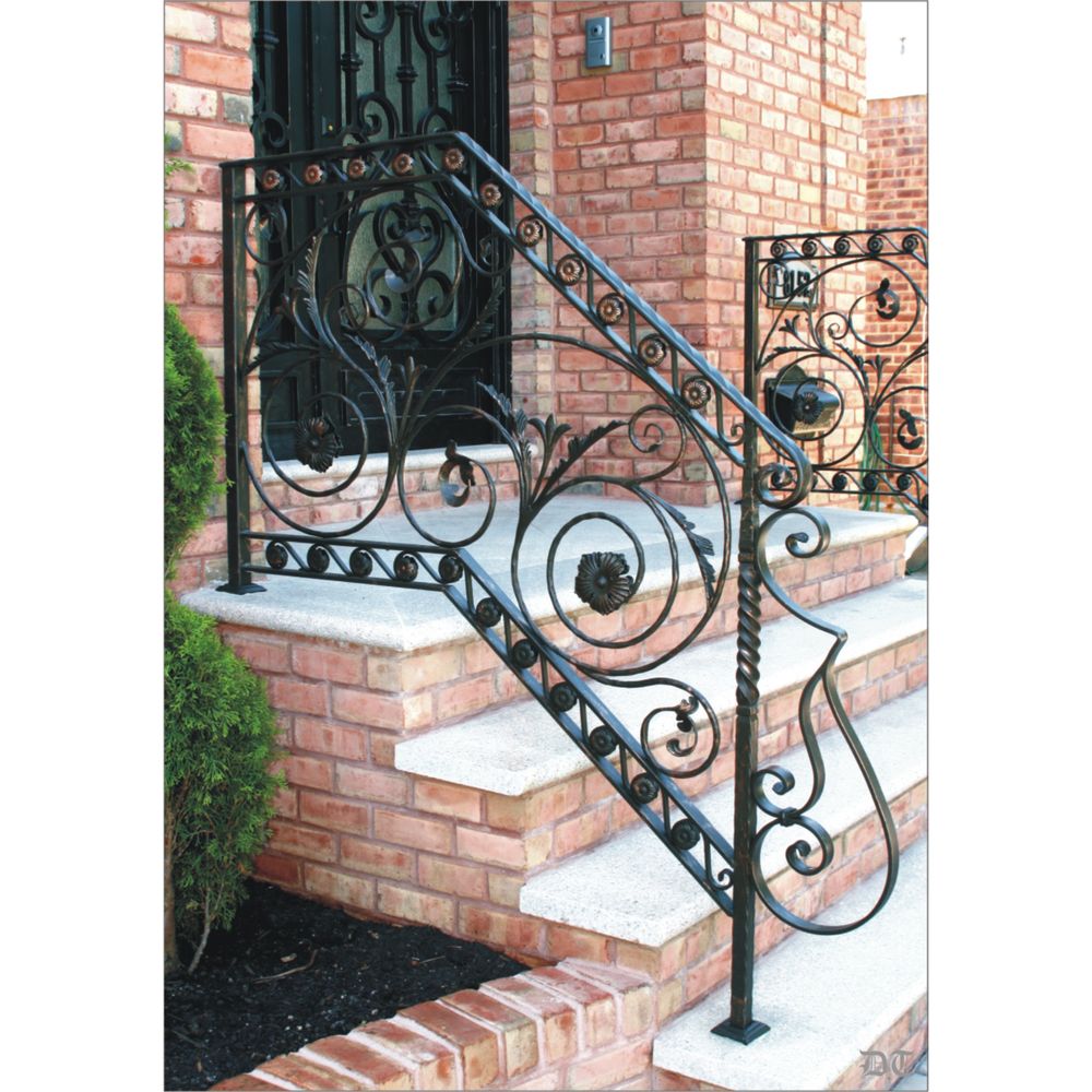Ejemplo de barandilla de forja Nº2003, elaborada con adornos, arranques y pletinas de hierro forjado.