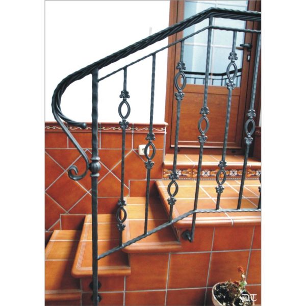 Ejemplo de baranda de forja Nº2087, elaborada con balaustres, arranques, bases y barras de hierro forjado.