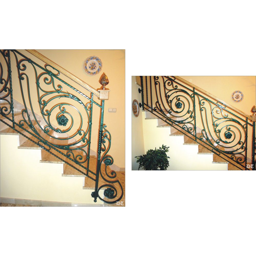Ejemplo de baranda de forja Nº2089, elaborada con adornos, arranques, barras de hierro forjado y remate de latón.