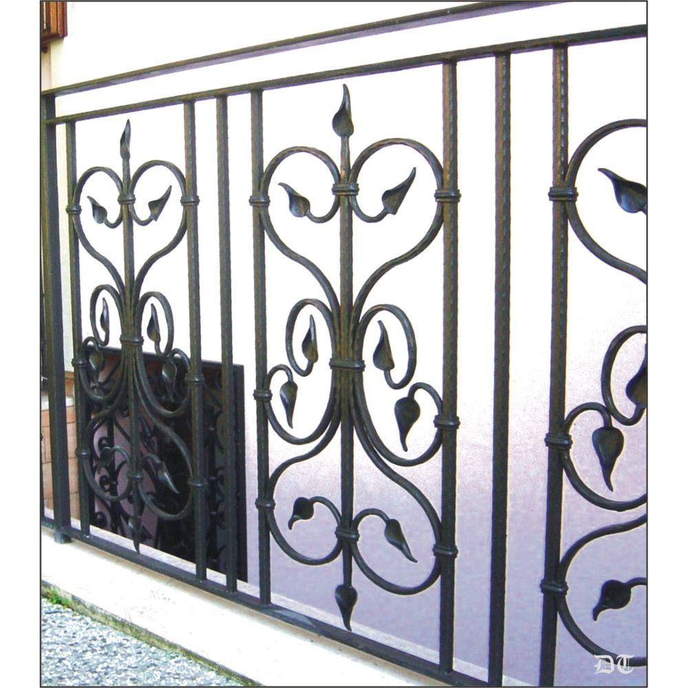 Ejemplo de baranda Nº2106, elaborada con balaustres, lanzas y barras de forja artística.