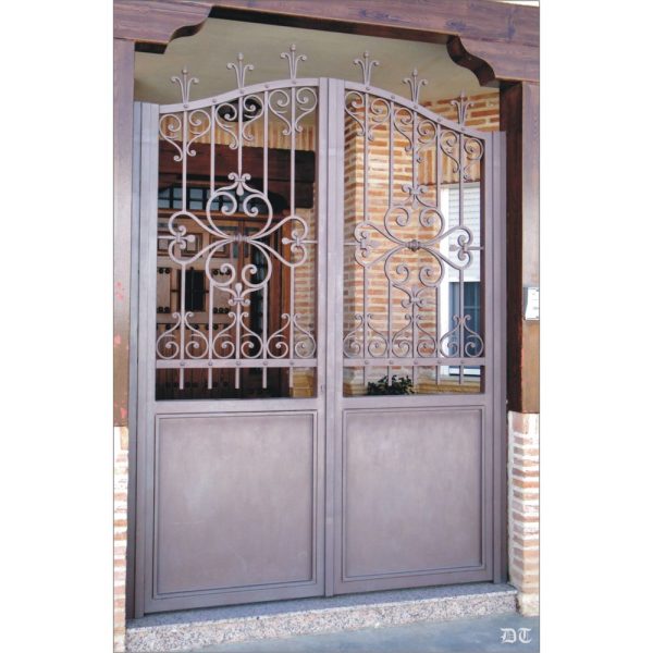 Ejemplo de cancela Nº1571, elaborada con adornos de forja artística y remachada artesanalmente.