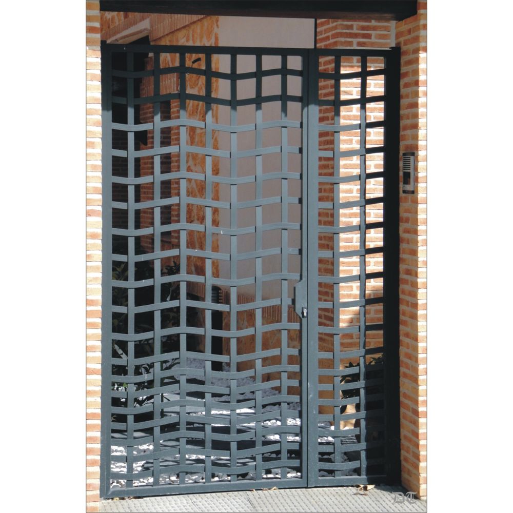 Ejemplo de cancela Nº1649, elaborada con panel decorativo de pletinas trenzadas.