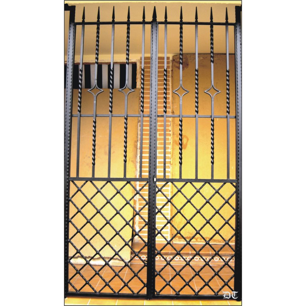 Ejemplo de cancela Nº1655, elaborada con retorcidos, barras forjadas, lanzas y adornos de forja artística.