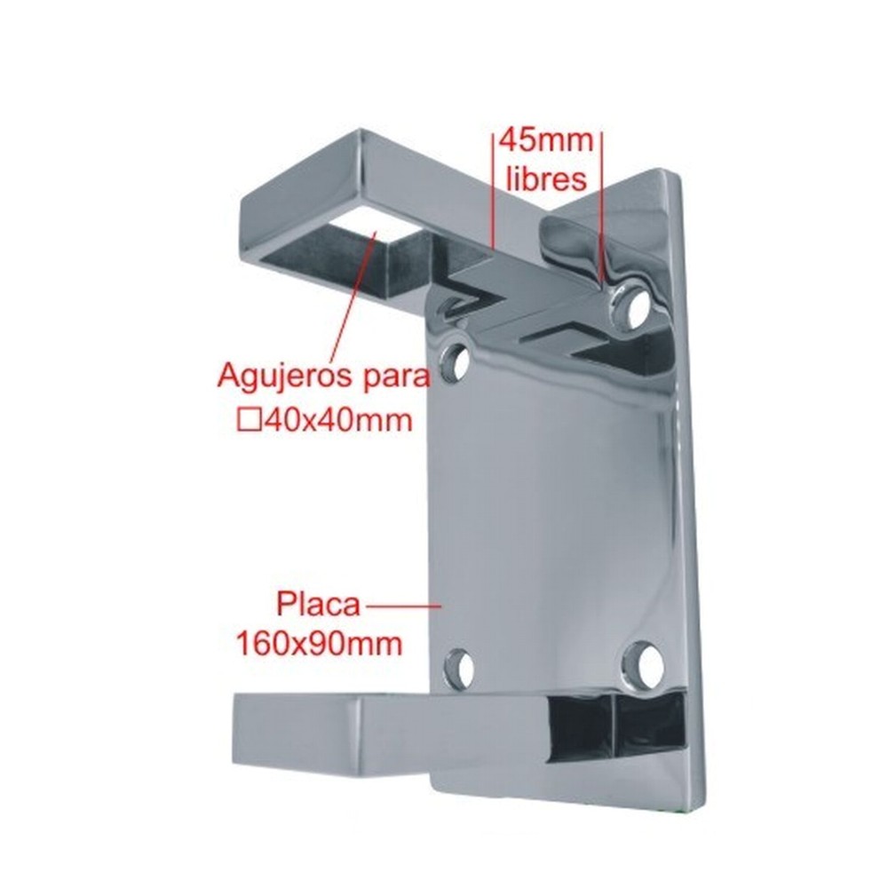 Este soporte está fabricado en acero inoxidable AISI316 con acabado pulido espejo, la placa mide ⬜160x90mm y es válido para colocarlo con un tubo, poste o arranque ⬜40x40mm.