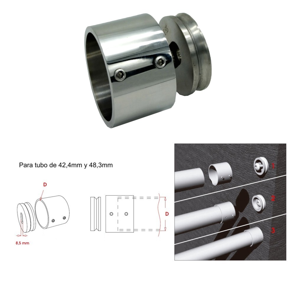 Pieza de inox utilizada para el montaje de pasamanos atornillados en la pared, antepechos o balcones.