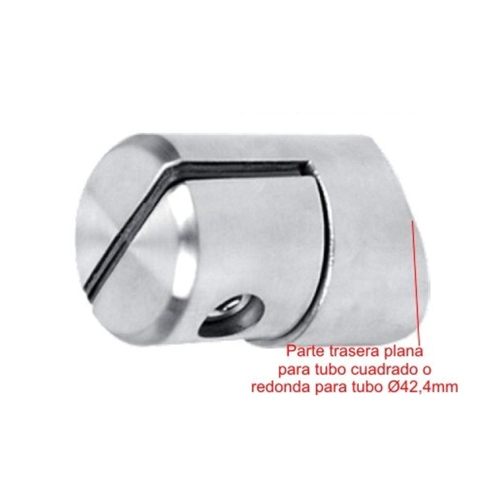 Soporte redondo 891-INOX de acero inoxidable para acoplar chapas, paneles de maderas, paneles de pvc o vidrios finos en tubos redondos Ø42,4mm o tubos planos, rectangulares, pletinas o paredes.