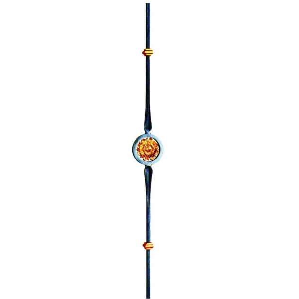 Barrote de forja con macollas y roseta de latón referencia 3-BL de 1000mm ■14x14mm.